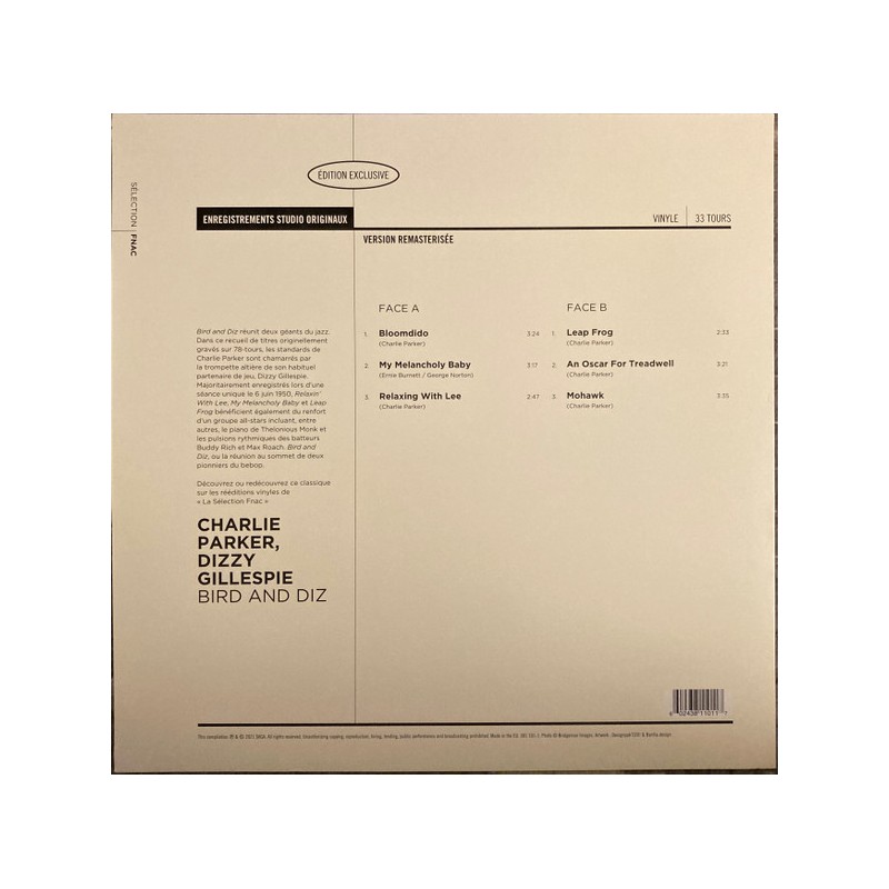 Charlie Parker - Dizzy Gillespie – Bird And Diz - LP Vinyl Album - 2021 France - Jazz